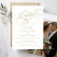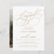Elegante, formal, estamos engajados em modelo de convite de festa de noivado branca e ouro com fotografia personalizada e roteiro clássico de caligrafia. ++++++++++++ Fácil de personalizar com a sua imagem e detalhes de festa de noivado!