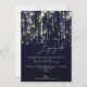 Este design de convite de festa de noivado minimalista apresenta um fundo cintilante de ouro azul marinho acabado com a elegante tipografia clássica da caligrafia. Uma festa de noivado personalizável moderna, mas elegante, faz com que esta seja uma escolha perfeita para convidar seus convidados a comemorar o anúncio do seu noivado.