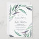 Este convite de festa de noivado de eucalipto roxo e verde é perfeito para um evento moderno ao ar livre. O simples e elegante design botânico apresenta um verde-aquarela com acentos de lavanda e roxo escuro.