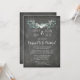 Convites de festa de noivado personalizados em padrão rústico de quadro de chalkboard com delicadas ilustrações florais da safra de primavera em azul claro e branco.