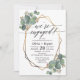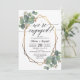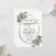 Este é um belo convite de festa de noivado de casamento com eucalipto e design de quadro geométrico de ouro.