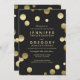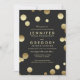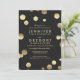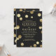 O convite para festas de noivado em preto e ouro apresenta pontos falsos de configuração de ouro em folha.