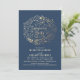 Marinho e ouro - hálito do bebê - convite para festas de noivado de buquê floral.