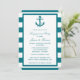 Estes marinho de ancoragem, festa de noivado de faixa azul ou convites para chás farão o anúncio perfeito para qualquer noiva e noiva! O design apresenta uma adorável turquesa e fundo listrado branco com uma âncora de efeito de folha de ouro náutica. Esses convites podem ser personalizados para sua ocasião especial e farão o anúncio perfeito para qualquer casamento na praia, chá de panela, festa de noivado, festa de aniversário e muito, muito mais.