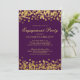 Esta coleção elegante do casamento caracteriza um fundo escuro com os confetes da cintilação do ouro que desvanecem-se acima da parte superior e da parte inferior. Aperfeiçoe para um evento temático elegante, moderno. O produto do exemplo é mostrado com um fundo colorido roxo da ameixa, mas seleciona simplesmente uma cor diferente para a parte dianteira e de volta ao personalize para combinar seu tema do casamento. Esta coleção é serida para umas cores mais escuras do fundo, para uns fundos mais claros, considera por favor esta lista: