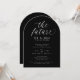Estabeleça o tom para uma celebração sofisticada com esses convites de festa de noivado preto modernos com uma tipografia branca elegante. O design curvo e o layout minimalista criam um estilo contemporâneo—perfeito para a festa de noivado de um casal em estilo preto e branco atemporal.