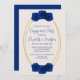 Convite Festa de noivado Real Azul e Dourada Geométrica