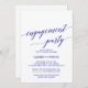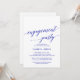 Este elegante cartão de convite para festa de noivado de caligrafia azul real é perfeito para um evento de outono. A design neutra apresenta uma carta minimalista decorada com tipografia azul romântica e branca.
