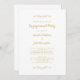 Sombra romântica e elegante de cor dourada e design de convite para festa de noivado de de casamento branco apresenta um design clássico clássico e tradicional eterno. O acabamento sem bordas permite que você escolha facilmente sua forma de papel favorita para a aparência final. Um fundo transparente permite que a beleza de sua escolha de papel seja apreciada na frente e no verso do cartão. Duas decorações florescem cada uma contendo um coração solteiro maravilhosamente rodeado pela escrita. Personalize com seus detalhes em letras românticas e roteiro. Para obter resultados ótimos, substitua os detalhes do modelo com seus próprios detalhes, deixando espaço entre os parágrafos como no exemplo e capitalizando onde especificado ou se a palavra for um nome adequado e normalmente capitalizado. Envie um email para invitationsuites@gmail.com com perguntas ou solicitações de cores personalizadas.