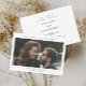 Convite para Festa de noivado Simples de Casamento Fotográfico com mínimo de tipografia e foto na frente. A parte traseira tem detalhes adicionais.