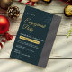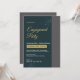 Celebre sua história de amor com este Convite à Festa de noivado Verde Azul Elegante, projetado com tons esmeraldas profundos, sotaques de guião dourados e layout moderno limpo. Perfeito para uma comemoração de classe, este convite define o tom de um evento de noivado inesquecível. Recursos: Script elegante emparelhado com fontes serif modernas Fundo verde-marinho Luxurioso com detalhes de data realçada em ouro Pronto para editar, incluindo a seção RSVP