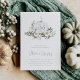Apaixonem-se por este design botânico etéreo para festas de noivado de outono. O Elegante design apresenta uma abóbora branca de aquarela, inscrita com as iniciais do casal e flanqueada por flores brancas, folhagem verde e folhas de eucalipto.