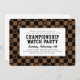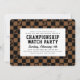 Celebre o maior jogo da temporada com este convite de tendências, futebol e tabuleiro de xadrez e reúna amigos para uma festa de observação de jogos do campeonato. Caixas de texto fáceis de editar e um código QR verificável na parte traseira envia convidados para o seu RSVP on-line ou site de organização do potluck. Este convite está pronto para ir para a equipe com cores pretas e marrons de futebol ou você pode alterá-las usando o botão editar e, em seguida, selecionar a camada de padrões > desagrupar > e selecionar cada azulejo de padrão individualmente e o plano de fundo para se adequar às cores da sua equipe preferida.
