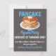 Convite de Aniversário de Dois Lados para Festa de Panqueca e Pijama.