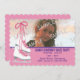 Este Convite de festas personalizável de Ice Skating apresenta um par de skates brancos de gelo com cadarços cor-de-rosa, texto personalizável, um modelo de foto para a foto do seu filho.