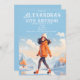 Festa de Patinação no Gelo de Inverno. Menina de cabelo castanho na pista de gelo ao ar livre entre as montanhas. Menina de patinação artística na pista ao ar livre. Convite de aniversário.