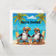 Esses adoráveis pinguins estão apenas relaxando na praia, prontos para festejar com você. Cores alegres e brilhantes, design detalhado em estilo cartoon torna um tema especial para qualquer ocasião especial. Aniversários, aposentadoria, aniversário de casamento, anúncios de nascimento de gêmeos, você vai gostar de usar os produtos da Festa de Pinguins.