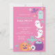 Ponha o tom para sua charmosa e assustadora esposa com convites com fantasmas irresistíveis e bonitos flutuando contra um pano de fundo rosa, prometendo uma encantadora celebração do Dia das Bruxas