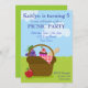 Este lindo convite de aniversário de piquenique apresenta um cheio de comida de cesta de piquenique e um texto personalizável para tornar a festa de aniversário do seu filho especial.
