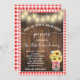 Convite de Festa de Verão no Bairro, Xadrez Vermelho com Girassóis. Adicione texto ao design. Para alterações adicionais (cor da fonte, estilo da fonte, remover ou mover elementos, clique em personalizar, role para baixo e clique no link "Editar usando a Ferramenta de Design". **Por favor, veja a coleção completa para convite, etiquetas e placa correspondentes**