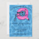 Um convite de festas de piscina inspirado em deco-arte para os "adultos" com um flamingo cor-de-rosa flutuando em uma ilustração da superfície da piscina azul com um sinal azul de meia-noite "na piscina". Envie este convite aos seus amigos para uma comemoração de verão tardia na sua piscina com boa comida, boas bebidas e boas vibrações.