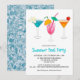 Convite de Festa de Piscina Adulto Coquetel Tropical de Verão com coquetel de festa tropical e um modelo de texto em fundo azul. O verso do cartão também tem fundo com textura de água .Um design perfeito para festa de piscina de verão ou para convites de festa de piscina de 4 de julho .Por favor, clique no botão personalizar para personalizar com seu texto ou nome.Visite minha loja " loveyouart" para outros ou semelhantes desenhos .