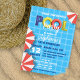 Apresentamos nosso vibrante e colorido convite para uma festa de piscina de aniversário. A design é divertida e enérgica, perfeita para capturar a essência de uma festa de piscina cheia de diversão. O fundo apresenta tons azuis brilhantes com padrões brancos tipo nuvem, evocando a sensação de um dia ensolarado pela piscina. Letras cor-de-rosa e cor-de-rosa, soletrando "FESTA de PISCINA" de uma maneira atraente no centro do convite. Os guarda-chuvas vermelhos e brancos aumentam a atmosfera festiva. Todos os pormenores essenciais sobre o acontecimento são claramente fornecidos, fazer-o simultaneamente um convite atrativo e funcional. Este convite é para animar seus destinatários e dar o tom para uma comemoração memorável de aniversário!