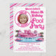 Convite de aniversário de piscina Malibu com piscina de plástico giro e vista para sua foto. Este convite de aniversário de piscina rosa Malibu funciona para qualquer idade, simplesmente adicione seus detalhes de evento.