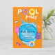 Celebrar um aniversário para gêmeos com um salto! Este convite apresenta itens de piscina (óculos, maiô, chinelos, bola, maiô e flutuadores) que rodeiam um esplaxo de água. Dentro, o salto de água são os detalhes do convite.