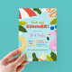 Celebre o início do verão com uma divertida festa de piscina para crianças no final do ano letivo! Este convite moderno e vibrante apresenta boias de piscina coloridas, folhas tropicais e elementos temáticos de verão ao redor da borda. Personalize-o com os detalhes da sua festa para criar um convite festivo que define o tom para um momento incrível. Disponível como convites impressos ou um download digital conveniente, é a maneira perfeita de começar o verão com estilo!