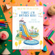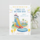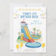 Faça um salto com este divertido e colorido convite de aniversário de deslize de água! Perfeito para festas de verão, esta design apresenta um slide gigante, palmeiras, e uma piscina legal — tudo que as crianças amam. Ideal para aniversários ao ar livre, parques de água ou festas de jardim. Personalize facilmente o convite com o nome, a idade, a data, a hora e as informações de RSVP em minutos. Excelente para rapazes ou raparigas que adoram diversão na água!