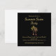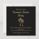 Convite de festas de natação de verão da Praia Tropical Negra, com palmeiras ilustrando design e anotações personalizáveis douradas. Excelente para planejar sua festa de piscina de piquenique com um tema simples na praia.