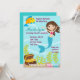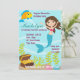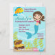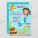 Este convite de aniversário de festa de piscina apresenta uma bela sereia e um baú de tesouro no fundo do mar e campos de texto personalizáveis para suas informações de partido.