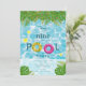 Um tema de aniversário moderno da piscina com folhas tropicais de cor aquosa, flores, brinquedos de piscina e água azul. Um perfeito convite de aniversário de verão com um tema tropical de piscina de natação. Personalize este design de aniversário temático de piscina com seus próprios detalhes e torne-o seu próprio. Visualize a decoração de festa de aniversário correspondente e os favoritos nesta coleção de designs.