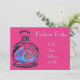 Um convite de festas para uma festa de perfumaria. Este convite totalmente personalizável apresenta um fundo cor-de-rosa brilhante com a ilustração original da moda de perfume de arte com texto personalizável.