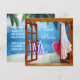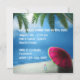 Convite de festa de praia de ilha tropical com palmeiras e coquetéis para adultos.