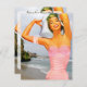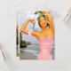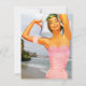 Convite apresentando uma ilustração vintage dos anos 50 de uma mulher num maiô com uma fotografia que tirei do oceano ao fundo. Personalize-o com seu próprio texto. legal!