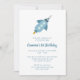 Convite de festas primeiro aniversario azul do foguete de espaço livre