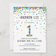 Primeiro aniversario de Confetti / convites de festas de aniversários! Apresentando os detalhes da festa do seu filho e um "1" em confetti, com círculos coloridos e divertidos em cores primárias brilhantes salpicando do topo desses convites bonitinhos.