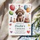 Celebre o dia especial do seu filho com este adorável convite de aniversário de temática cão! Com um filhote doce com balões, chapéus de festas e um bolo de aniversário, este cartão personalizável é perfeito para amantes de os animais ou festas de aniversário de animais de estimação. Personalize com o nome do seu filho, os detalhes do partido e as informações de RSVP para um convite único que dê o tom para uma celebração divertida e festiva. Este convite diz "primeiro aniversario", mas você pode facilmente mudar para qualquer ano de aniversário. Excelente para meninos e meninas, este convite de aniversário de cachorrinhos torna o planejamento de festas fácil e inesquecível!