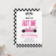 Este é um Convite de festas rápido de primeiro aniversario de carro com uma chama rosa!