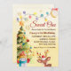 Celebre o seu primeiro aniversário com este adorável Convite para primeiros aniversarios de Natal "Sweet One". Apresentando um trabalho de arte festivo de Natal com uma árvore de Natal decorada, luzes de cordas brilhantes, um bonitão de neve e uma rena fofa num chapéu de Papai Noel, este design é perfeito para uma celebração mágica de aniversário de dezembro. O charmoso tema do inverno dá o tom para uma festa acolhedora e alegre. Personalize com o nome do seu filho, os detalhes de aniversário, a data, a hora e a localização para criar um convite de manutenção que a família e os amigos irão adorar. Ideal para as primeiras festas de aniversário de férias, as celebrações sazonais e os bebês de dezembro!