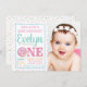 Meninas Foto de rosquinha primeiro convites de festas de aniversários com rosquinha de aspersão rosa e cor-de-rosa fofinha e fundo de aspersão e espaço para fotos. Este convite de aniversário de rosquinha é facilmente personalizado para o seu evento adicionando a sua fotografia e os seus detalhes.