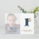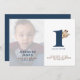 primeiro aniversario. Rapaz. Azul e castanho. Foto. Convite de festas. Simples.