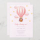 Convite para primeiro aniversario de Quente Ar Ballon de Aquecimento com Aquarela Rosa