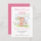 Uma ilustração resumida de uma menina bonita segurando balões e sentando no excelente ao ar livre para a festa do primeiro aniversario de sua filha, tem o texto é uma mistura de roteiro elegante, sans simplistas e UM num estilo de esboço artístico. Personalize facilmente os seus próprios detalhes.