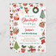 Celebre o seu marco especial com este festivo Convite para primeiros aniversarios de Natal de inverno. Apresentando elementos de férias como biscoitos de gengibre, árvores de Natal, ornamentos, coroas, meias e cacau quente, este design alegre é perfeito para uma celebração de aniversário de inverno. Personalize facilmente com o nome do seu filho, a data da festa, a hora e os detalhes de RSVP. Ideal para a primeira festa de aniversário de Natal ou a celebração do bebê de Natal de inverno, este convite traz alegria, calor e encanto sazonal para o seu evento.