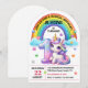 Arco-íris brilhante e colorido e convite de festas do Unicórnio, mude o texto para o que você quiser quando você pedir