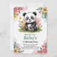 Este design de convite para o aniversário de panda floral inclui uma bonito borda de cor d'água floral. Há um urso panda fofo no centro que está sentado num pedaço de erva. Por baixo, há um espaço para adicionar suas informações em uma fonte decorativa e fácil de ler. Este convite diz "primeiro aniversario", mas você pode facilmente mudar para qualquer ano de aniversário. Esses convites divertidos, porém bonito, para festas de aniversario de meninas também incluem escrevendo rosa.