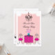 © 2010 Designs socialitas. Um design de chá branco e provando de convite de festas de vinho que inclui um sortido de chá floral, toalha de mesa damasco e candelabro na frente e óculos de vinho na parte de trás. Personalize este convite com seu próprio texto. O estilo de fonte e o tipo de papel podem ser alterados. Adicione seu próprio toque pessoal adicionando embelezamentos como fitas, rochas ou flores de papel apenas para citar alguns. Precisa de ajuda com personalização? Por favor, não hesite em contactar-me com os seus requisitos.